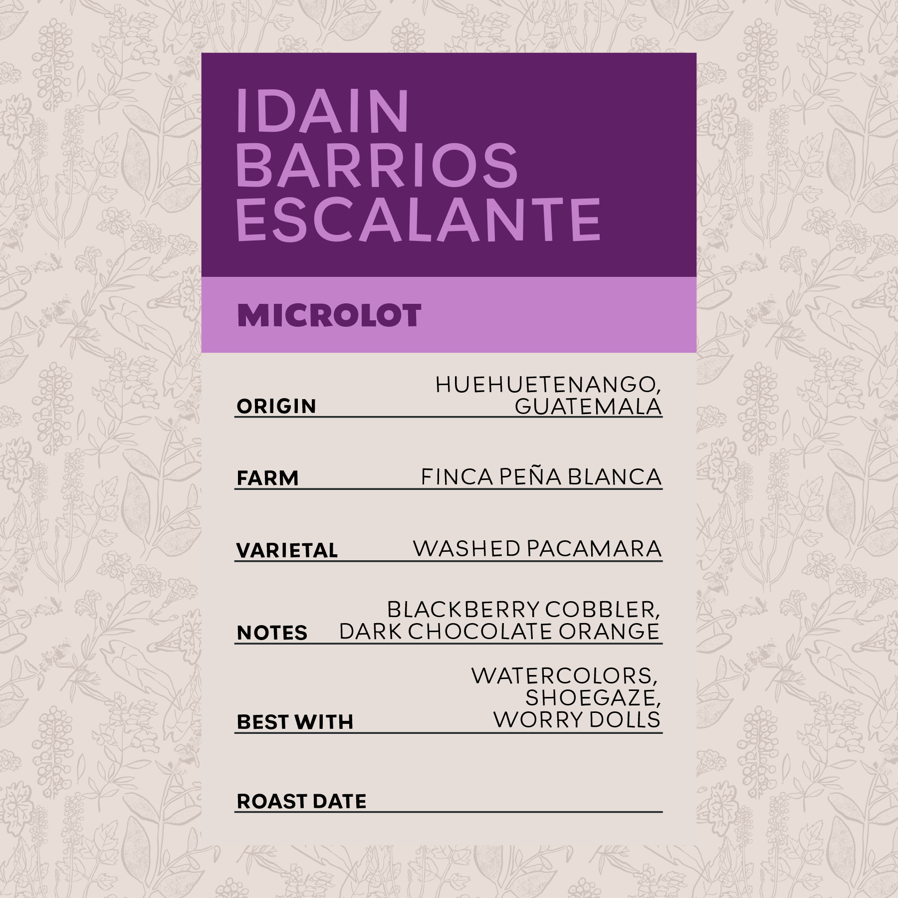In the Spring of 2025, we travelled to Huehuetenango, Guatemala to meet Amilcar and the crew at Asociación de la Campesina. While visiting their facilities and tasting coffees from several smallholder farmers that Amilcar works with we came across one of the most delicious coffees we had ever tasted; a washed pacamara bursting with berries, tropical fruits, and dark chocolate from Idain Barrios Escalante's farm Finca Peña Blanca.